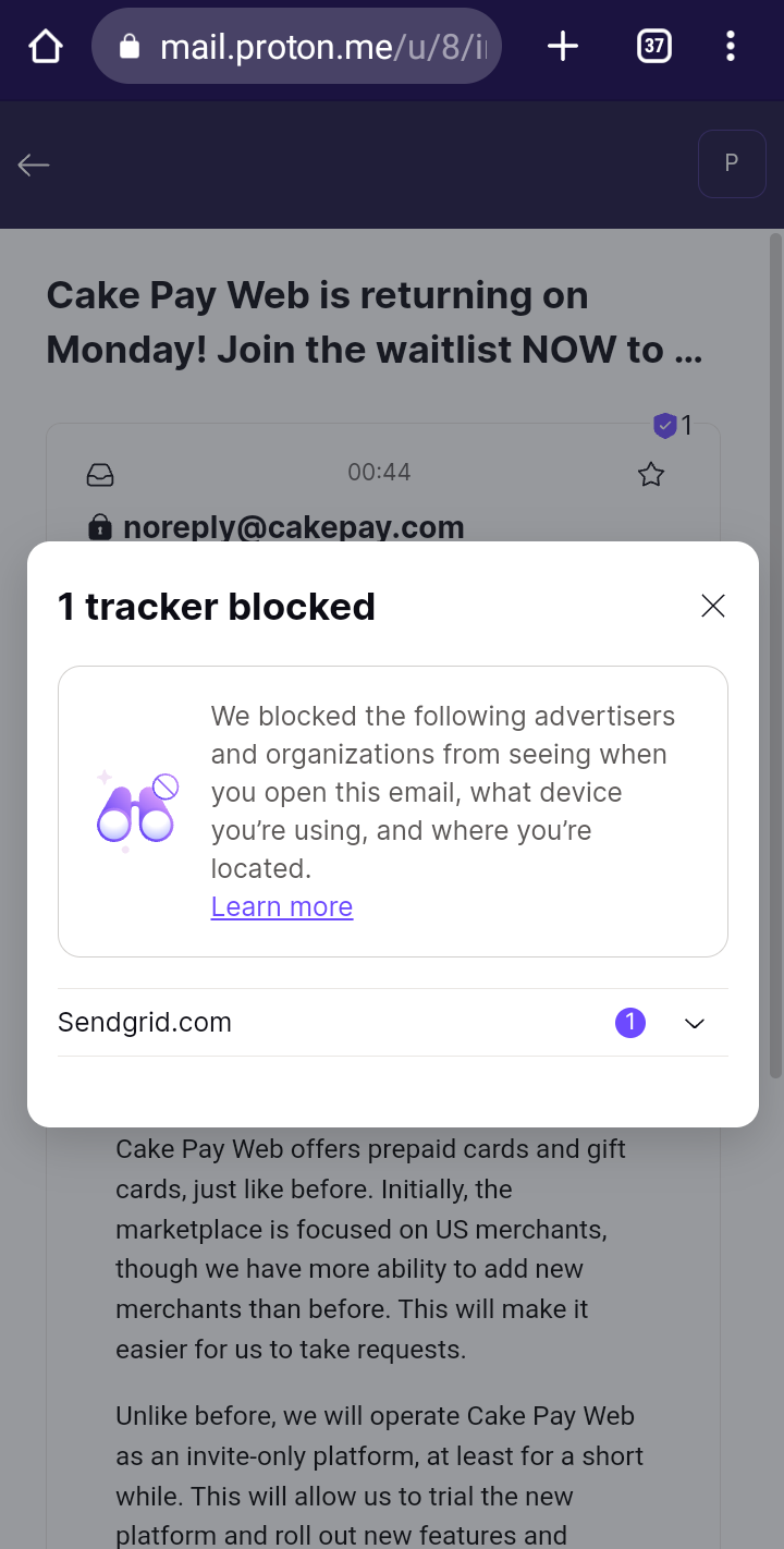 m-relay<plowsof:matrix.org> I just got an email saying cake pay web is back on Monday