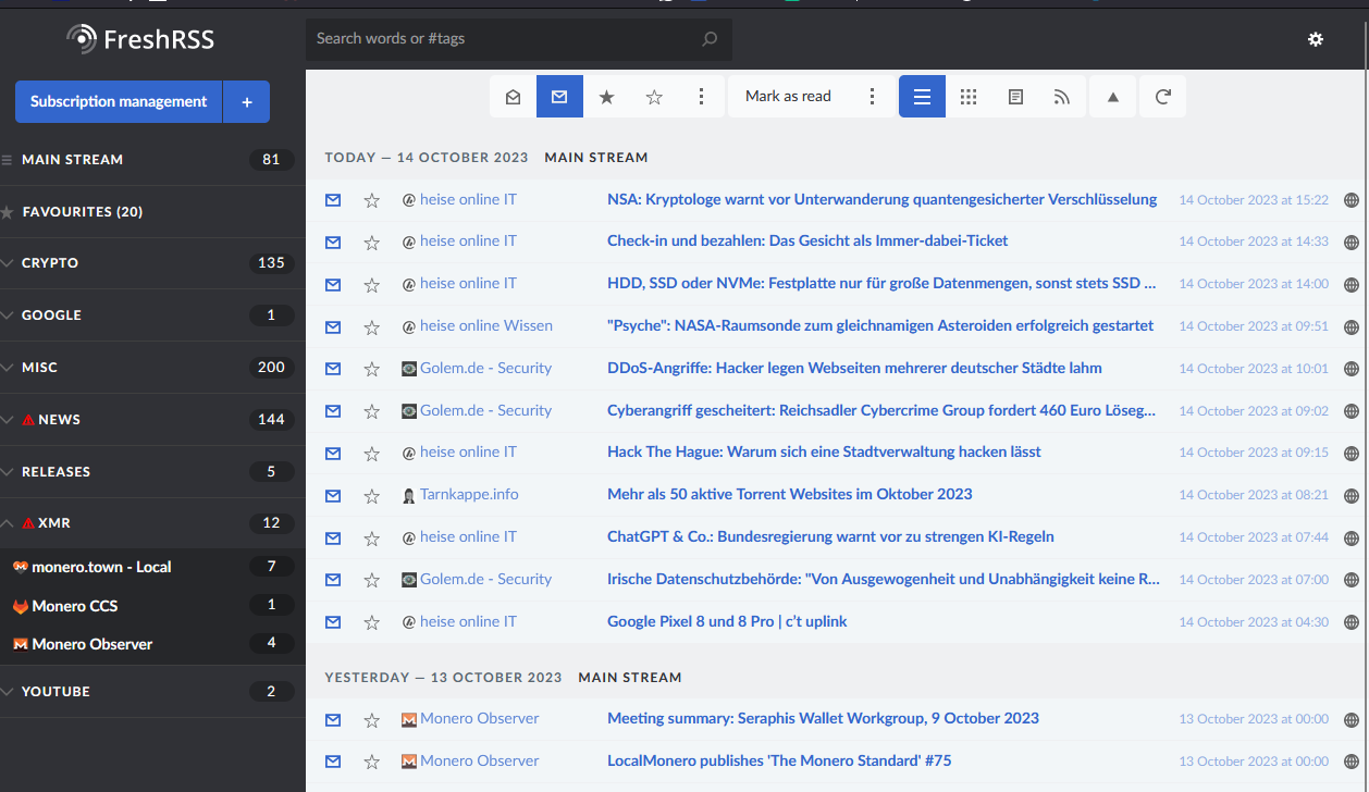 <monerobull:matrix.org> i suggest you to set up an rss reader instead