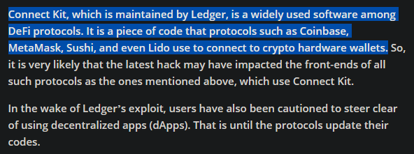 <orion_midast:matrix.org> Yeah bunch of fuckers. The hackers put some code in the API that is used to connect Ledger to dapps
