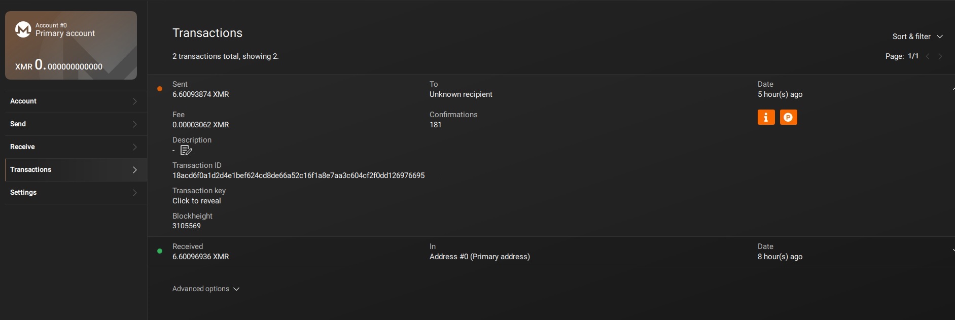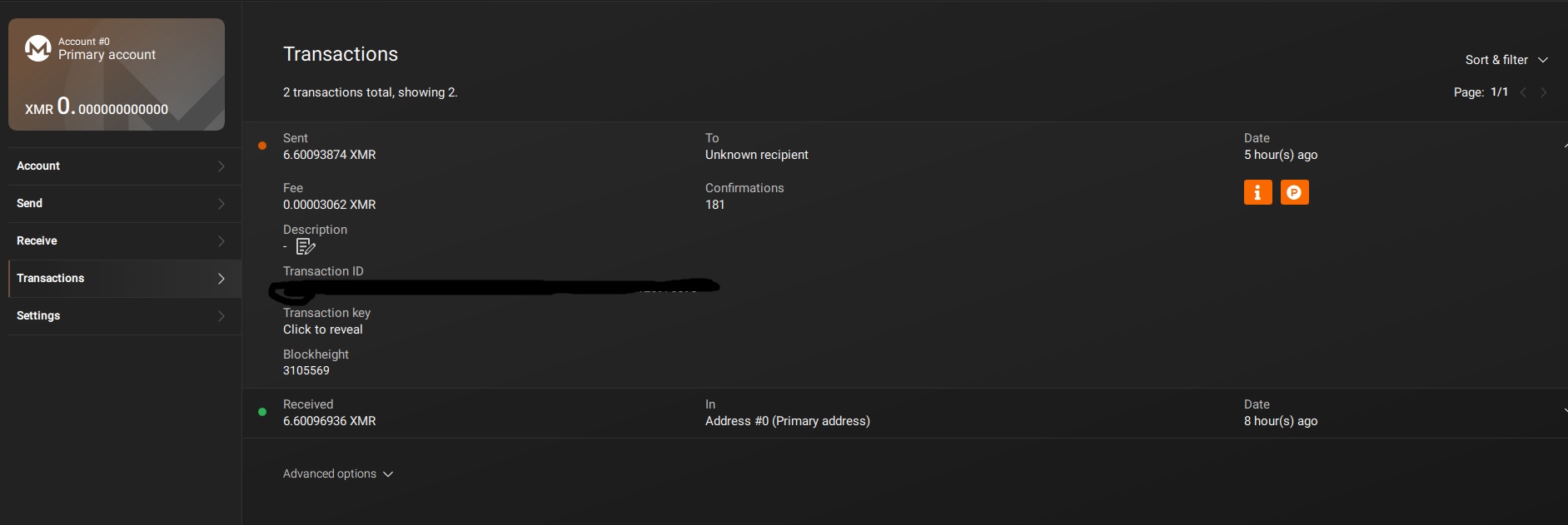 <xmruserzzzz:matrix.org> When sending funds, I indicated the same wallet in which the funds were located. I did this by mistake. The transaction says that the recipient is unknown. And the money was not returned to my account.