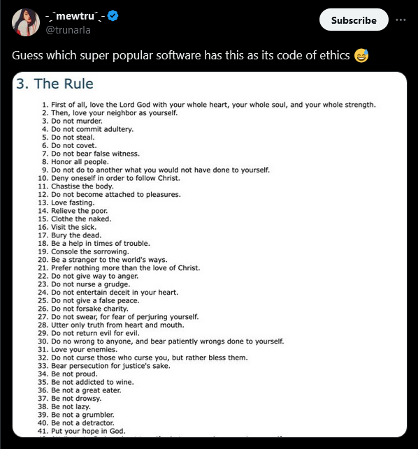 <yasabi:matrix.org> it describes but does not mandate positive behavior, but succinctly defines what is unacceptable
