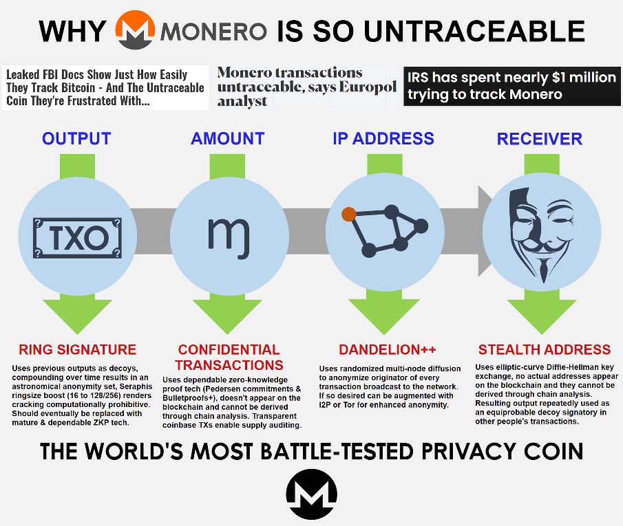 m-relay<zxvb:matrix.org> this question might sounds dumb but is XMR 100% untraceable?