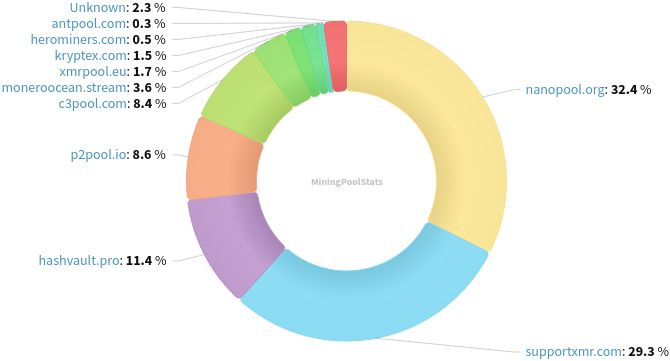<kewbit:matrix.org> I don’t usually raise these types of topics but I am beginning to become concerned about something, I was looking at some stats, it appears 2 mining organisations if paired together owns more than 60% of the hash rate