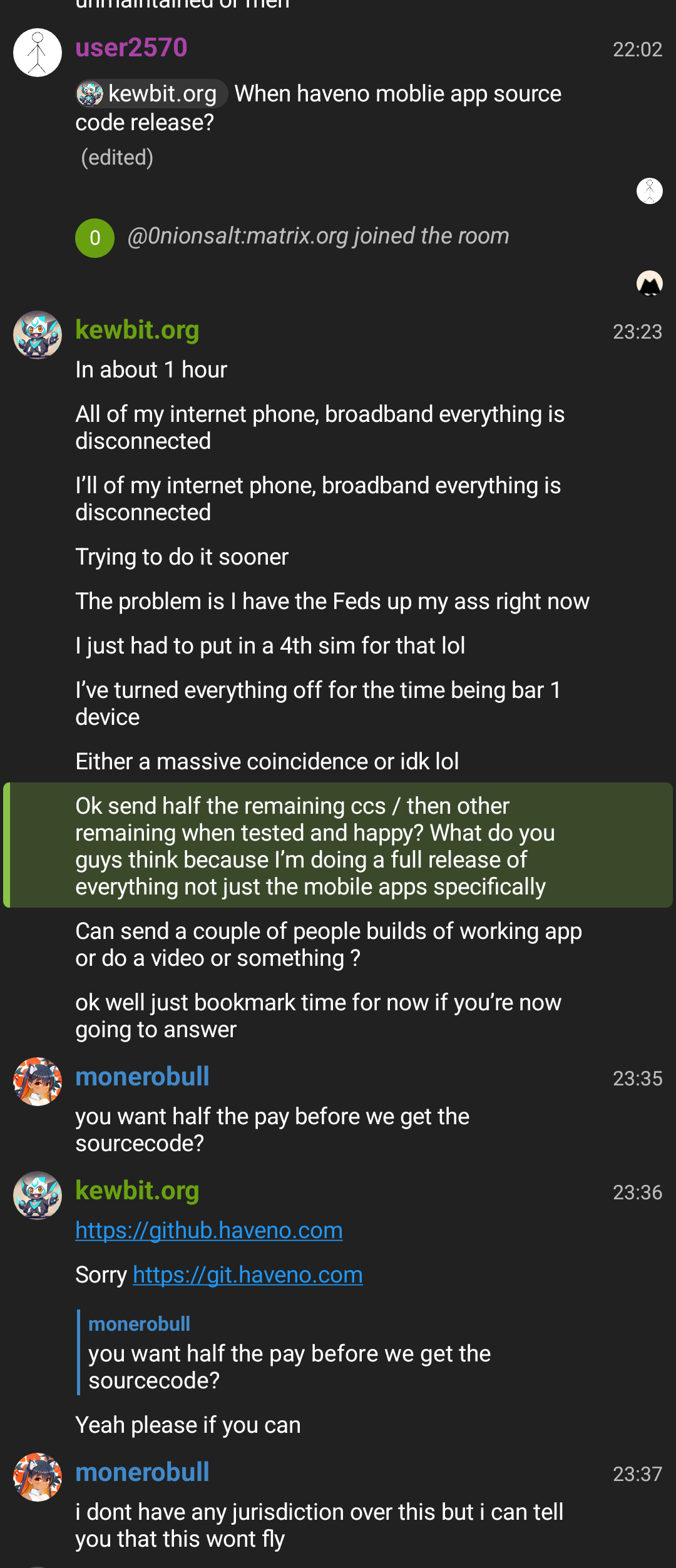 <preland:monero.social> I for one don’t want to believe that kewbit did this entire thing either as an egotistical power trip or as a coordinated effort to extort tens of thousands from the already battle-hardened CCS fund, but if he doesn’t show the source…..well, if you can’t see something, it might very well not exist.