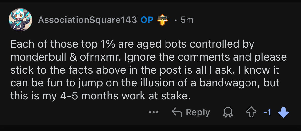 <rbrunner7:monero.social> Reddit has quite a reach, and many readers will have no idea about the whole long, complicated and very sad backstory