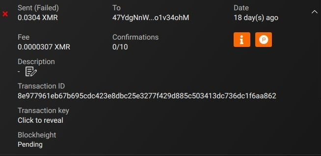 <dolch4k:matrix.org> We would like to inform you that we have identified a bug in the XMR Monero network that is currently causing issues with withdrawing funds.