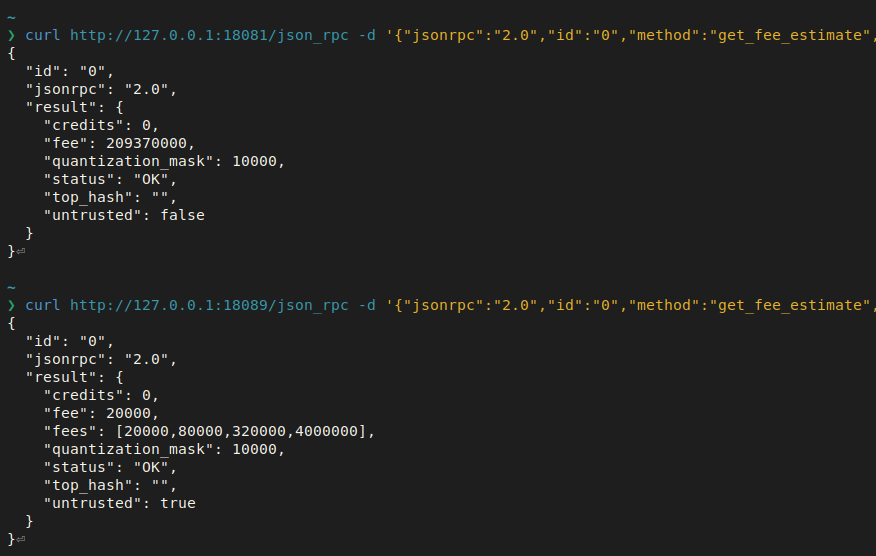 <someoneelse495495:matrix.org> why is the `fees` field in `get_fee_estimate` core rpc response not consistent