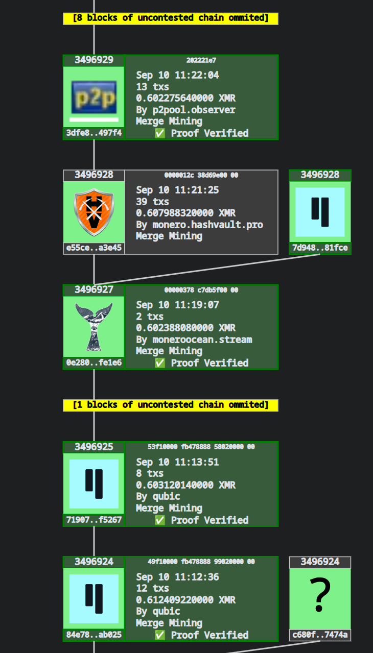 @rucknium:monero.social, p2pool api now also returns orphan blocks, monero-blocks had an update to support this new format (and mark blocks as orphan) but old one keeps working, just labels blocks as valid
