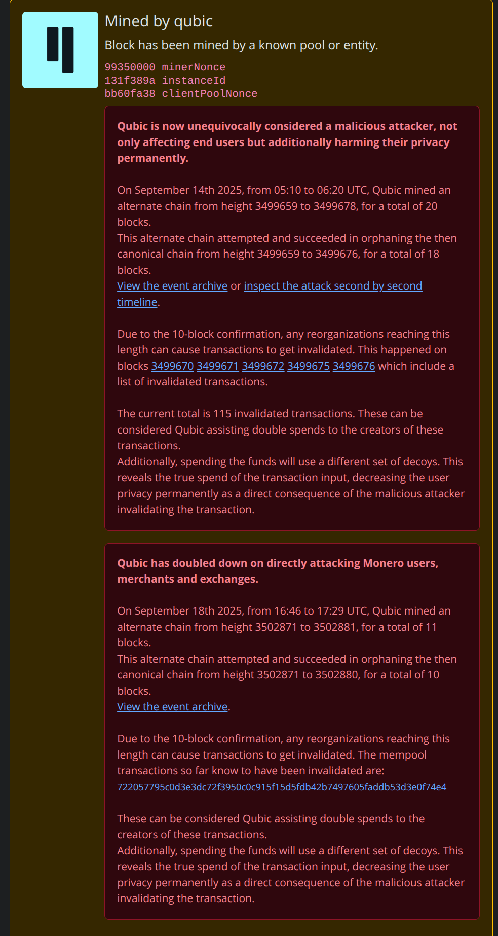<rbrunner7> Just for the record: If anybody claims that >=10 block reorgs do mess something up in a real way in Monero, CFB will challenge you to appear on X for a tough talk about your ignorance and/or your lies