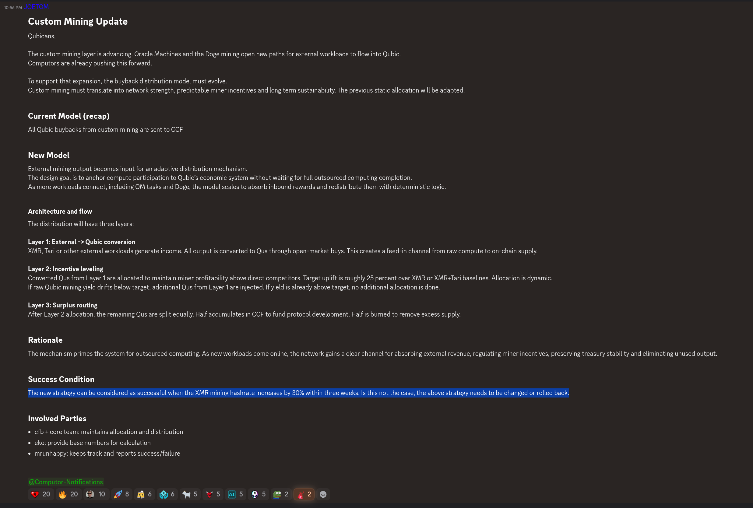 Qubic update, they may be trying to change their reward model again, targeting hashrate increase. They are currently at ATL levels so maybe they are trying to make more news