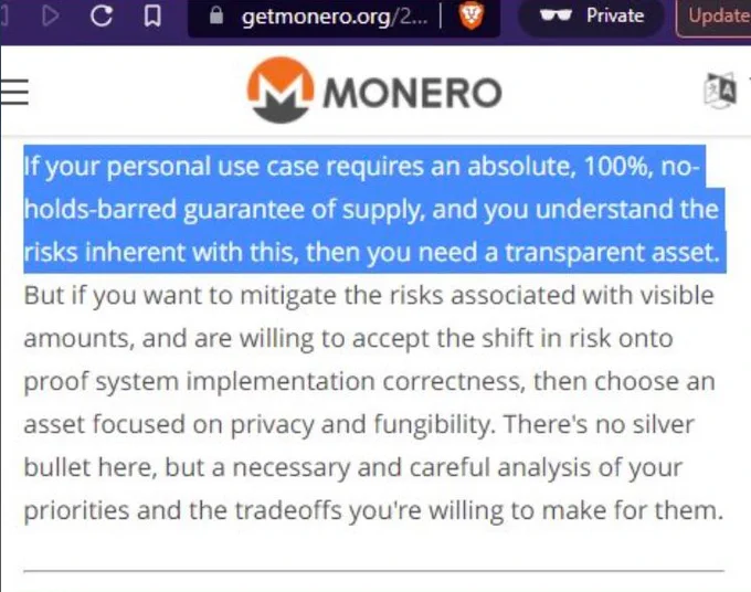 can't pander to maxis trying to 1 up someone on twitter. monero is renowned for being open about its strengths/flaws