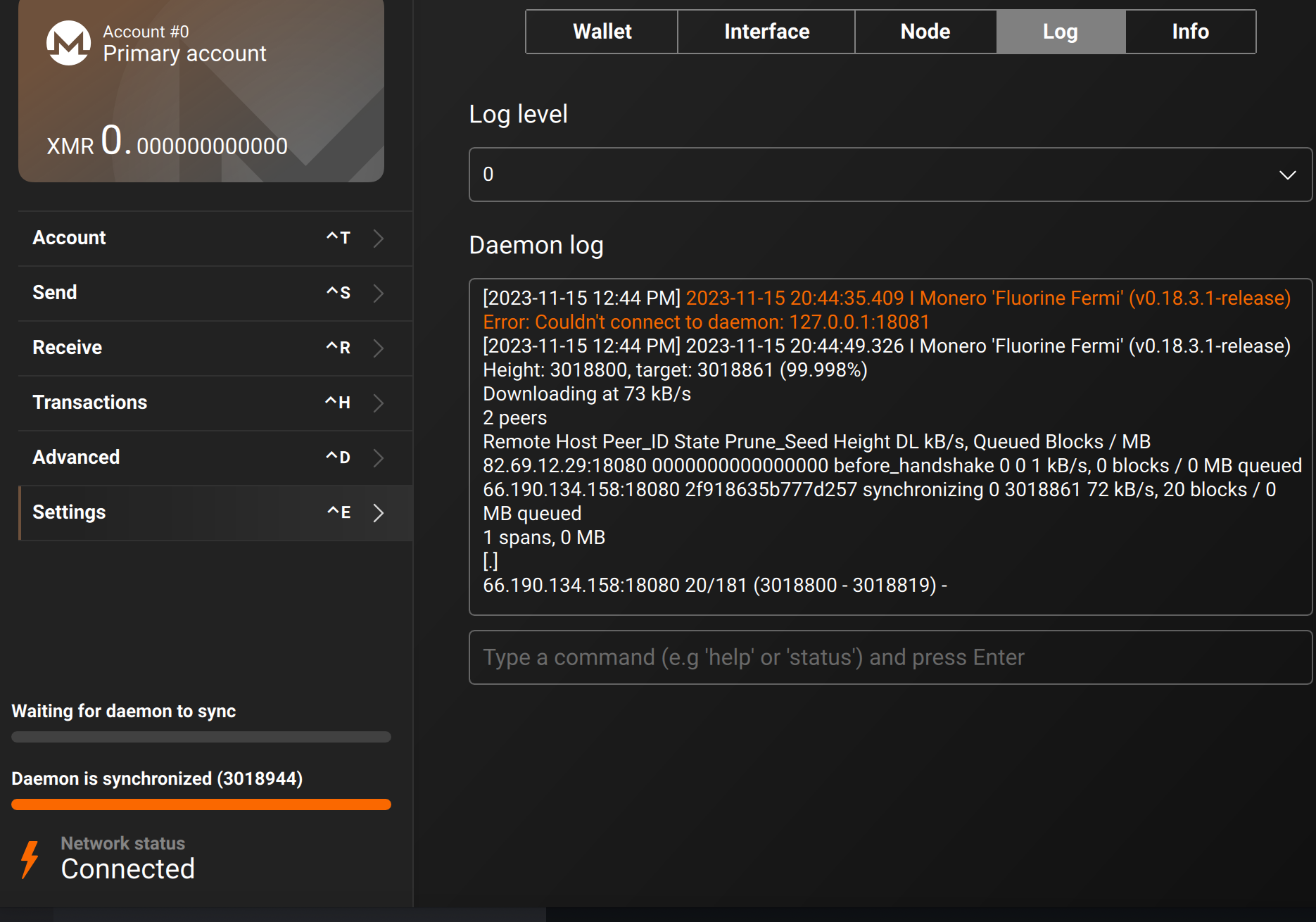 <crabwalk:matrix.org> Couldn't connect to daemon: 127.0.0.1:18081