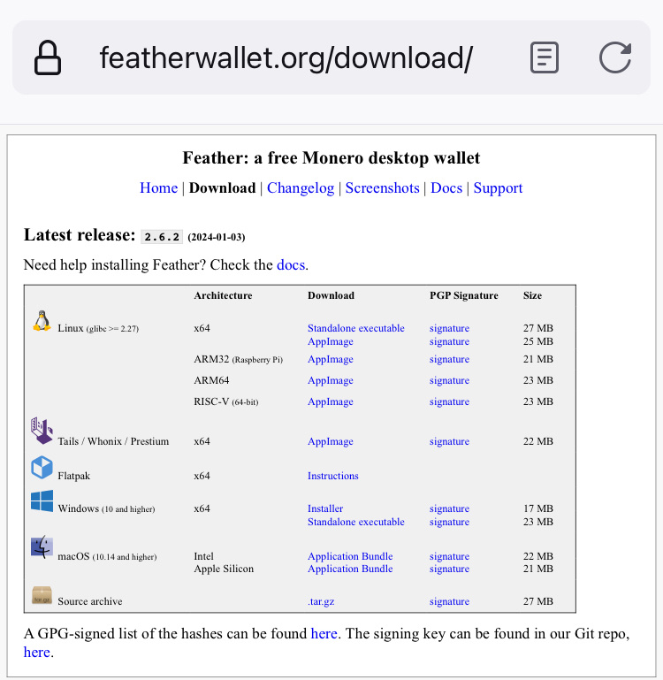 <plowsof:matrix.org> monero wallets are not pgp signed