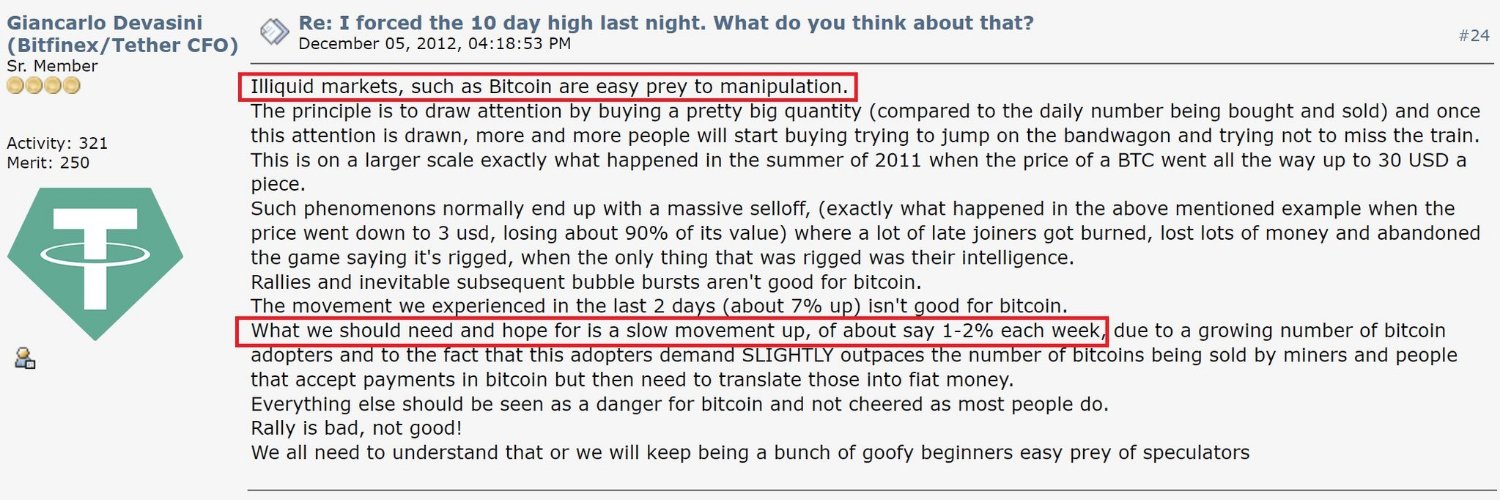 <monerogoingto0:xmr.mx> bitcoin initial usecase wasnt mainly dnm. it was used a lot there but it was heavily manipulated against trader this was the main one. one day bitcoin go from $30 to $2 because tether/bitfinex was manipulating price to scam bitcoin trader. this proof from CFO of tether