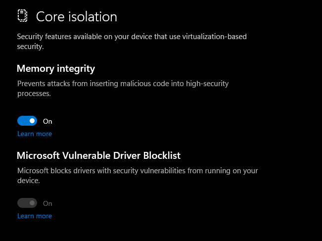 <ravfx:xmr.mx> If it was windows 11, it could have been core isolation stuff.