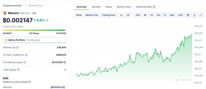 <aremor:matrix.org> Seems to be driving up XMR/BTC