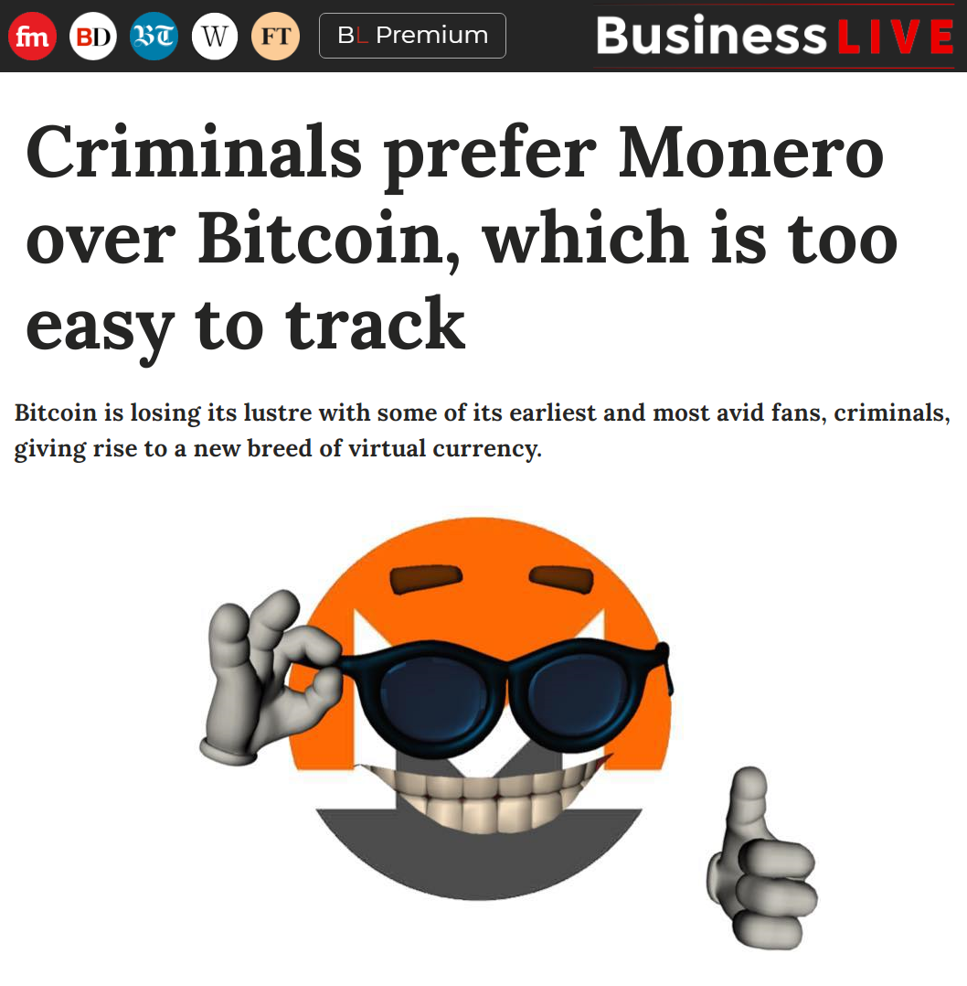 <defibeillegal:bitcoinist.org> monero is the criminal coin