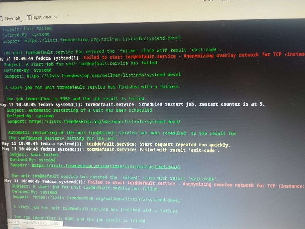 <karano:poddery.com> ` job for tor⊙ds failed because the control process exited with eror code.`