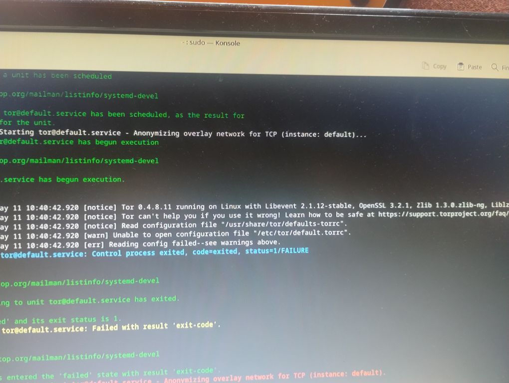 <karano:poddery.com> but with this command `sudo systemctl restart tor@default` i get an error
