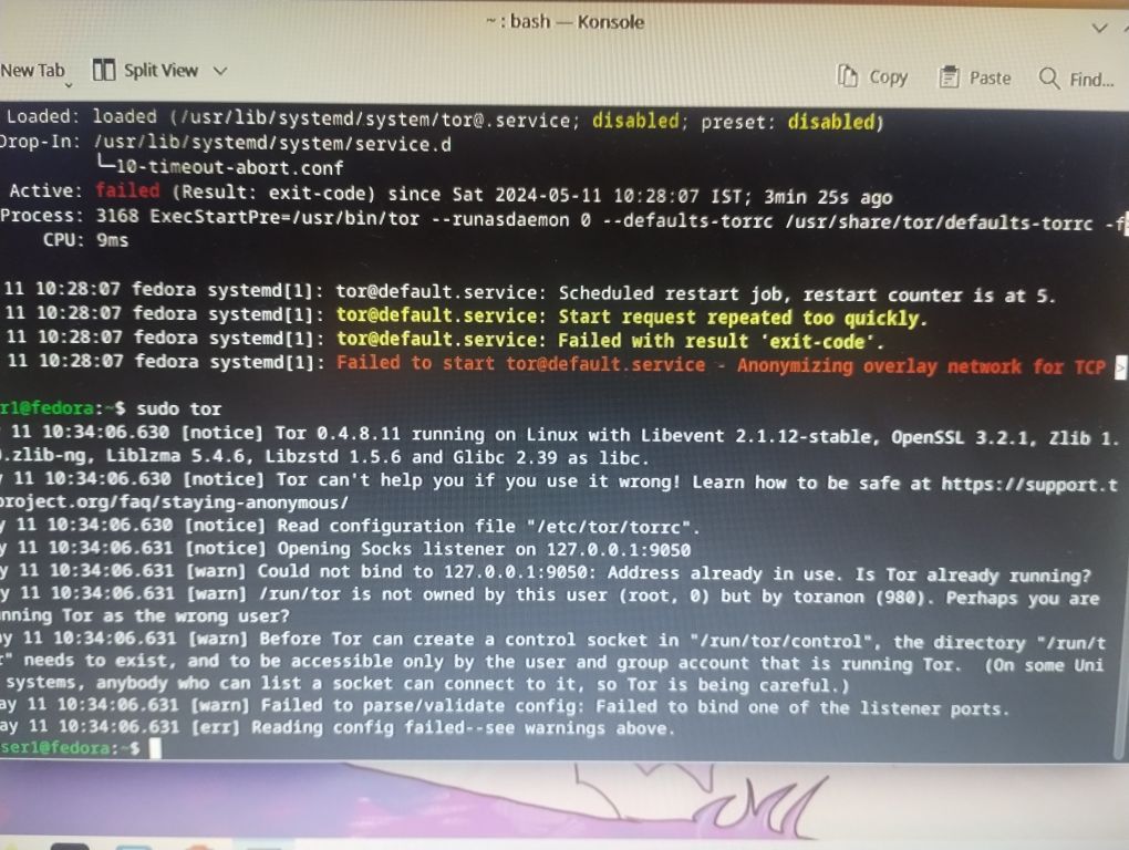 <karano:poddery.com> ` failed to start tor⊙ds -Anonymizing overlay network for tcp.`