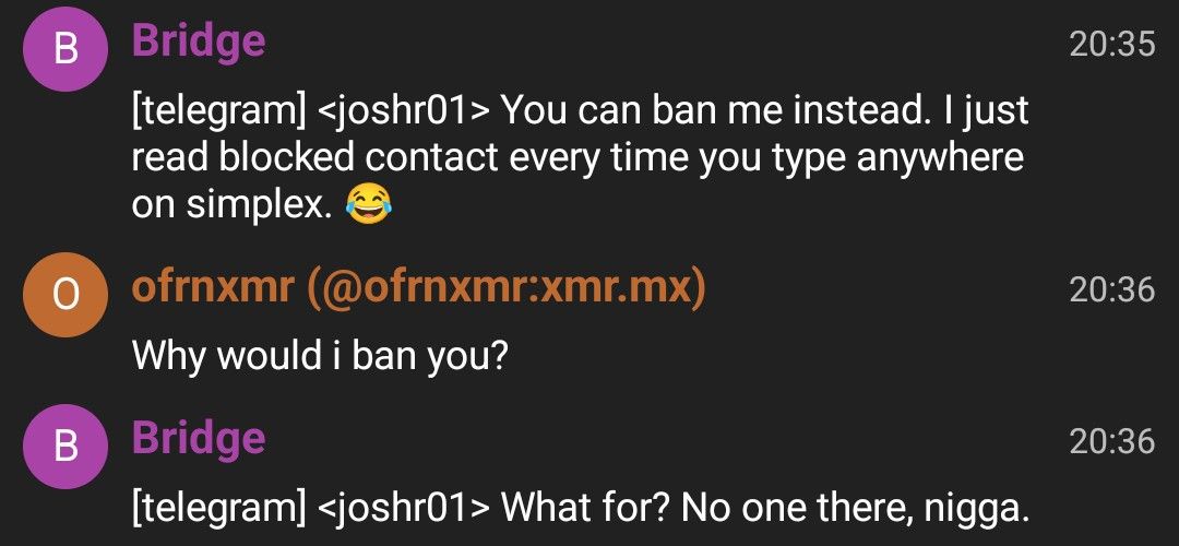 <syntheticbird:monero.social> You better not be in denial and accept the sad reality that you need another matrix account