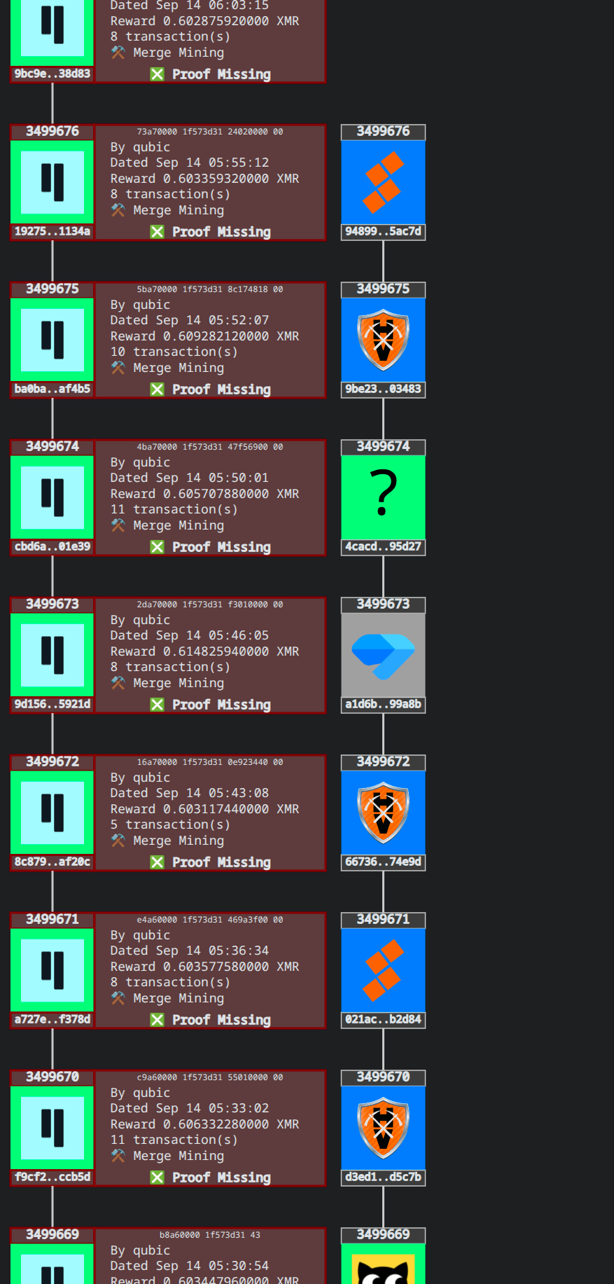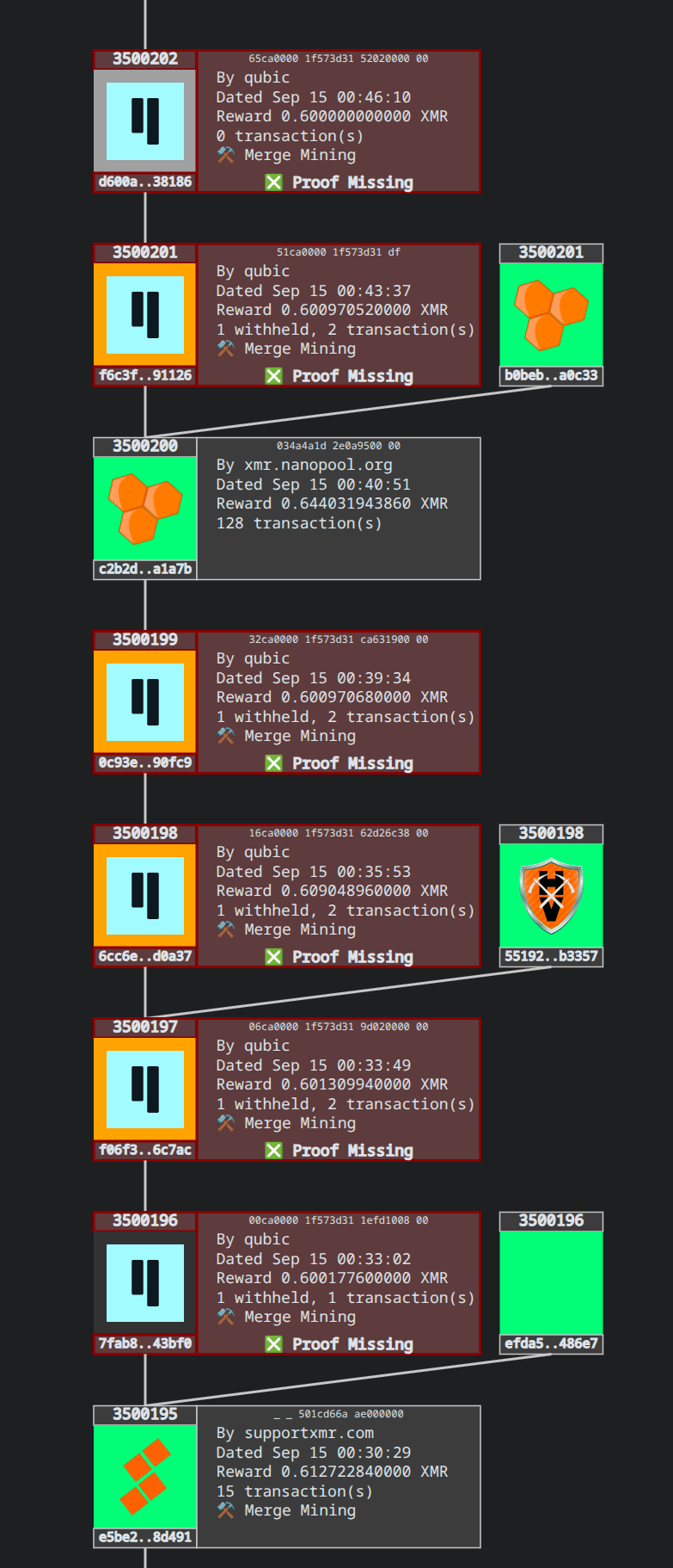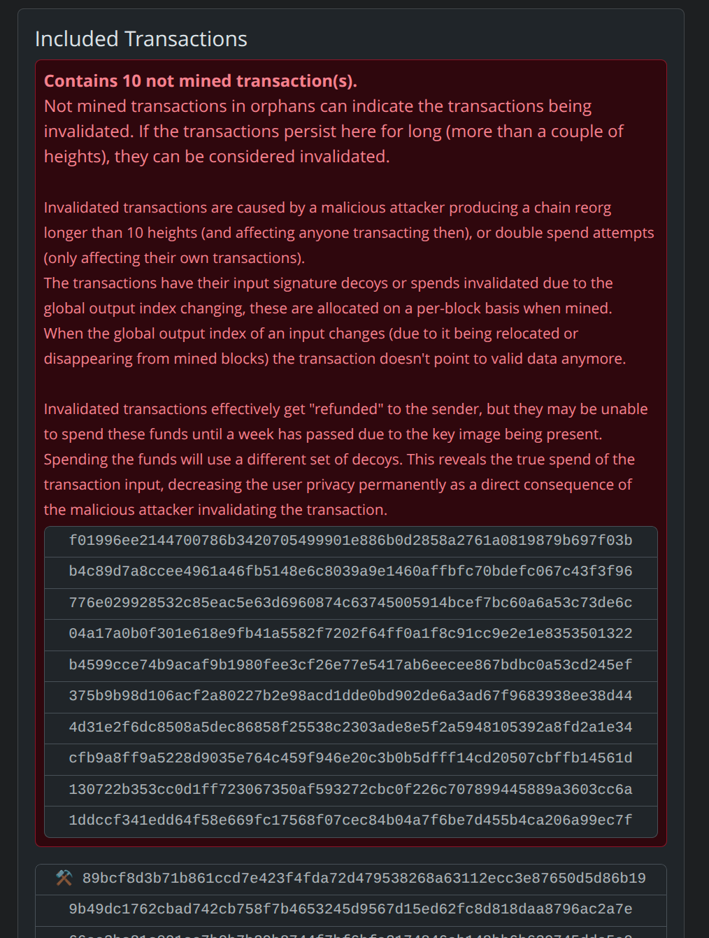 Blocks with invalidated transactions now appear blue in blocks.p2pool.observer chain. Relevant blocks with invalidated transactions: