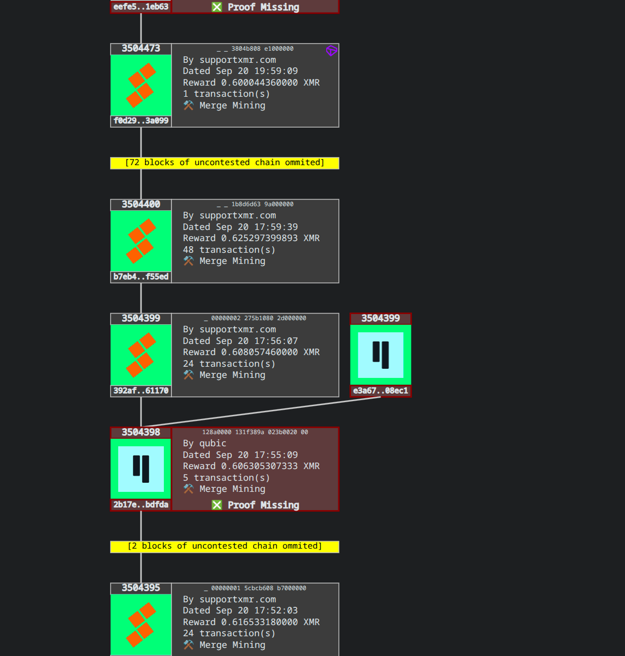 note both sides get orphans but the end result is worse for qubic