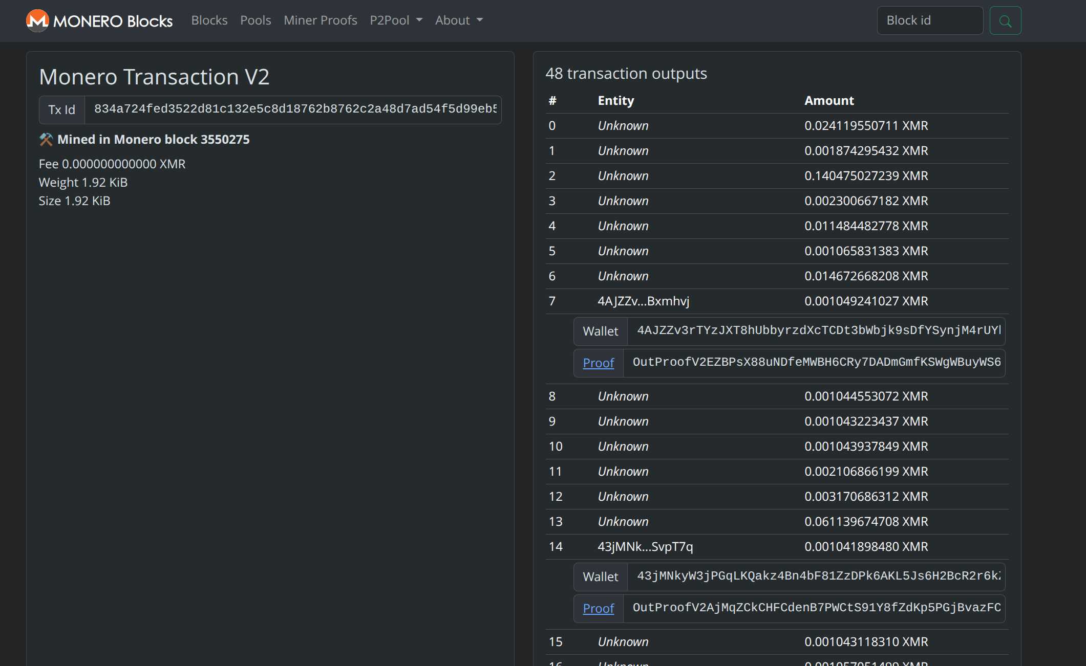 Sxmr's payouts aren't going to be perfectly sized, so we should have change coming back to our own address.