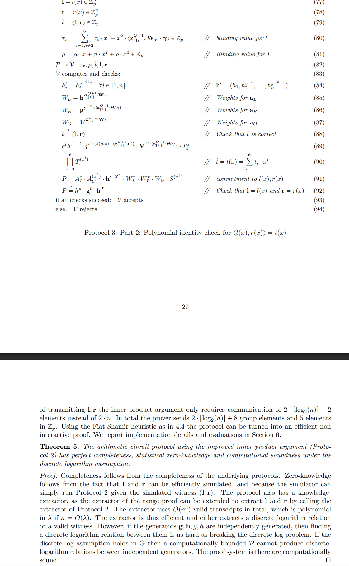 > Proof. The range proof is a special case of the aggregated range proof from section 4.3 with m “ 1. This is therefore a direct corollary of Theorem 3.